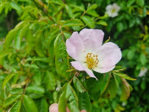 Our participant from western Canada feels she is only now catching up with foraging and experiencing the landscape through food and medicine, largely because phenological events in Canada are compressed, with nature going from dormancy to full bloom in a very short space of time after the winter. In recent weeks, there have been lots of rain and heat which has created the perfect conditions for everything to explode into life. For the first time she has picked the petals of the Alberta wild rose Rosa acicularis, the provincial emblem, which had just come into bloom. She was astonished by the fragrance and flavour, citing it as a deeply sensory experience “like licking someone wearing perfume” (Participant, 2025). She talked of how the petals can be used for teas, and the leaves for healing. In indigenous medicine, the leaves are chewed up and made into a poultice for wounds, burns, and bee stings. She had also picked a rosehip that had been left on the bush from last year, which prompted a discussion about this part of the plant's usage as food, medicine and in gameplay.