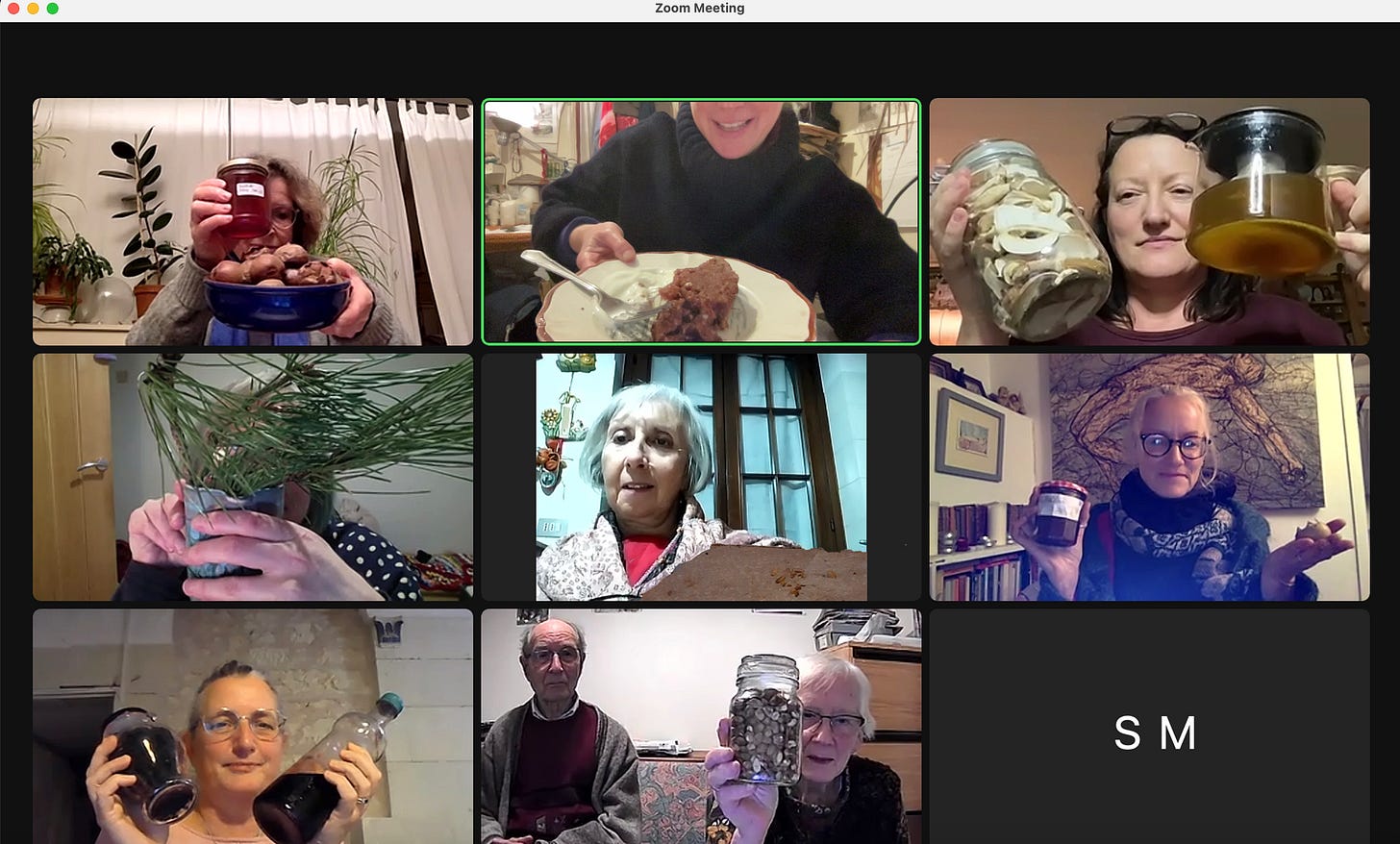 The invisible grid is furthermore present in these Commons Feast Virtual Monthly Meet-Up participatory performances, in the event's cyclical (monthly) nature, and the conversations instigated by witnessing the seasons through foraging, an 'unfolding of life', as well as evident in the grid of Zoom windows, the glimpse into participants' worlds on the screen.