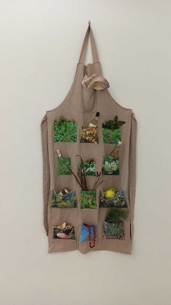 Over the last couple of weeks, I’ve been working on a piece for a group show, Gé zi (格子): The Invisible Grid curated by Taiwanese artist, curator and colleague at the University for the Creative Arts, Cheng-Chu Weng at Five Years Gallery, London. My piece is a foraging almanac in the form of an apron.